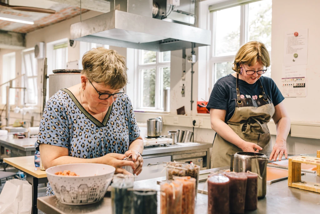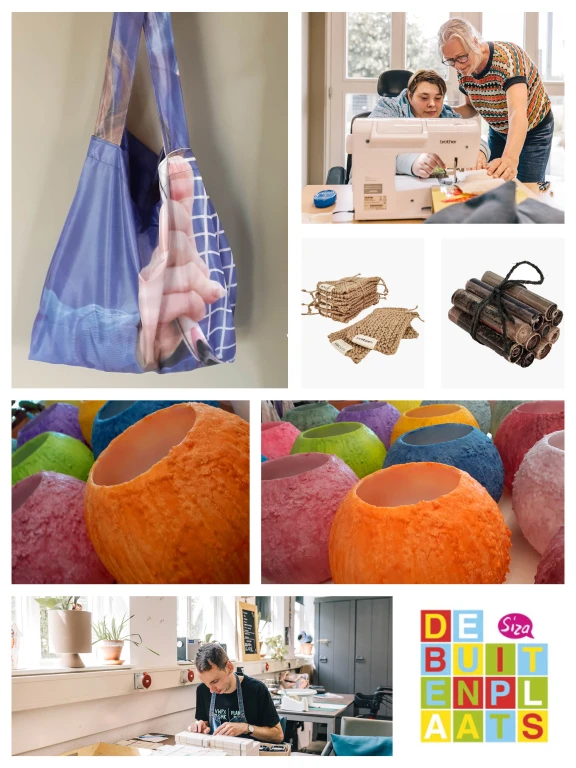 BuitenGewoon Winkel & Werkplaatsen – De Buitenplaats Werkplekbeschrijving Buitengewoon bestaat uit onze winkel en drie werkplaatsen. Op onze werkplaatsen werken wij aan verschillende producten van textiel-, zeep- en kaarsen. Vouw tassen, shoppers, woonaccessoires, zeepbootjes, knuffeltjes en een variatie aan kaarsen. Wij werken voor diverse externe afnemers o.a.: Botma & van Bennekom, Rescued, EromesMarko, SPICA, Live&Mobility, Jumbo, gemeente Arnhem maar ook onze eigen merken. www.designxambacht.nl, www.mooiwerksiza.nl Samen met jou helpen wij mee aan jou persoonlijke doelen met de begeleiding die hierbij nodig is. Je kan altijd vrijblijvend een dagdeel meekijken om sfeer te proeven. Hou je van meewerken aan producten in een professionele omgeving. Bij ons ervaar je geen werkdruk, er wordt geluisterd naar je wensen en wij bieden jou ontwikkeling op maat. Kom gerust eens bij ons kijken!